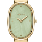 Inspired by sun-soaked days by the water and luxurious evenings, the Jane Watch embodies effortless elegance. This timepiece features a delicate 23mm oval case paired with a champagne-colored mother of pearl dial that catches the light beautifully. The gold-plated stainless steel bracelet fastens with a refined jewelry clasp, making it as much a statement piece as it is functional. A timeless classic that transitions seamlessly from day to night. Note: Mother of pearl is naturally unique—each dial features its own distinct texture variations, making your Jane truly one-of-a-kind.