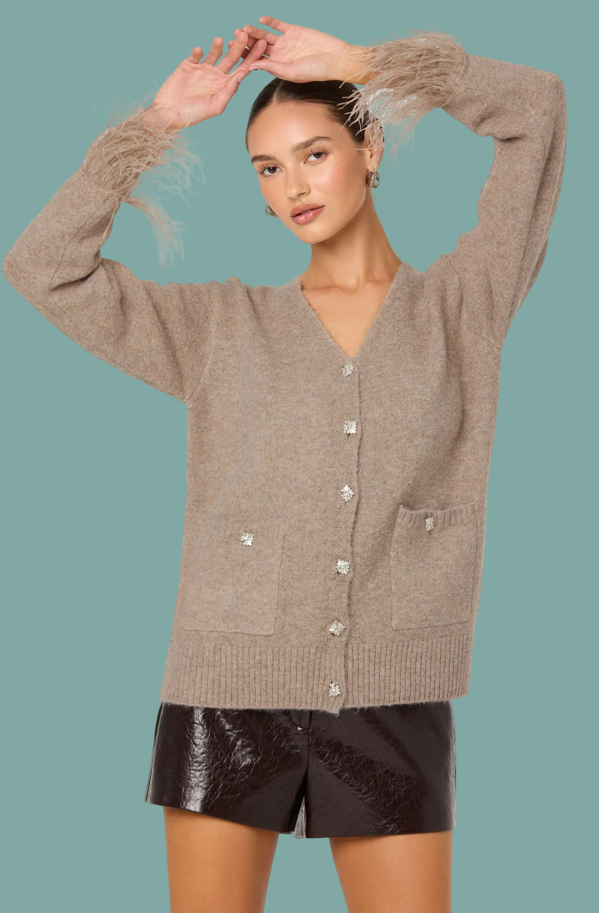 Grie Embellished Feather Cardigan
