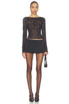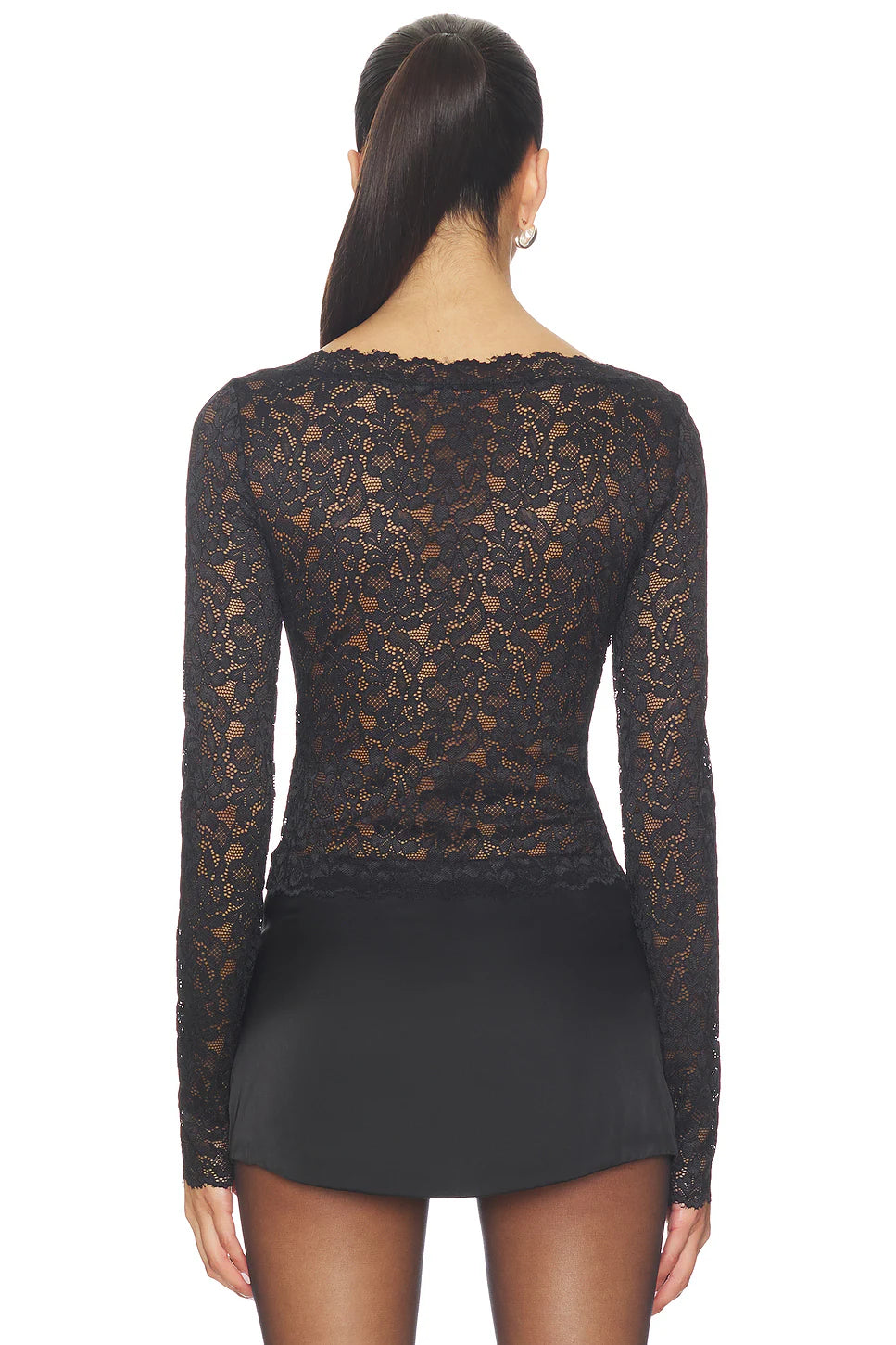 Stay chic in the Alma Lace Top with its boat neck and intricate black lace design. Made with a comfortable blend of 92% nylon and 8% spandex, this long sleeve top is perfect for any occasion. Elevate any outfit and feel confident in this must-have piece.