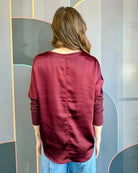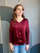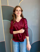 L/S V-NECK SATIN TOP