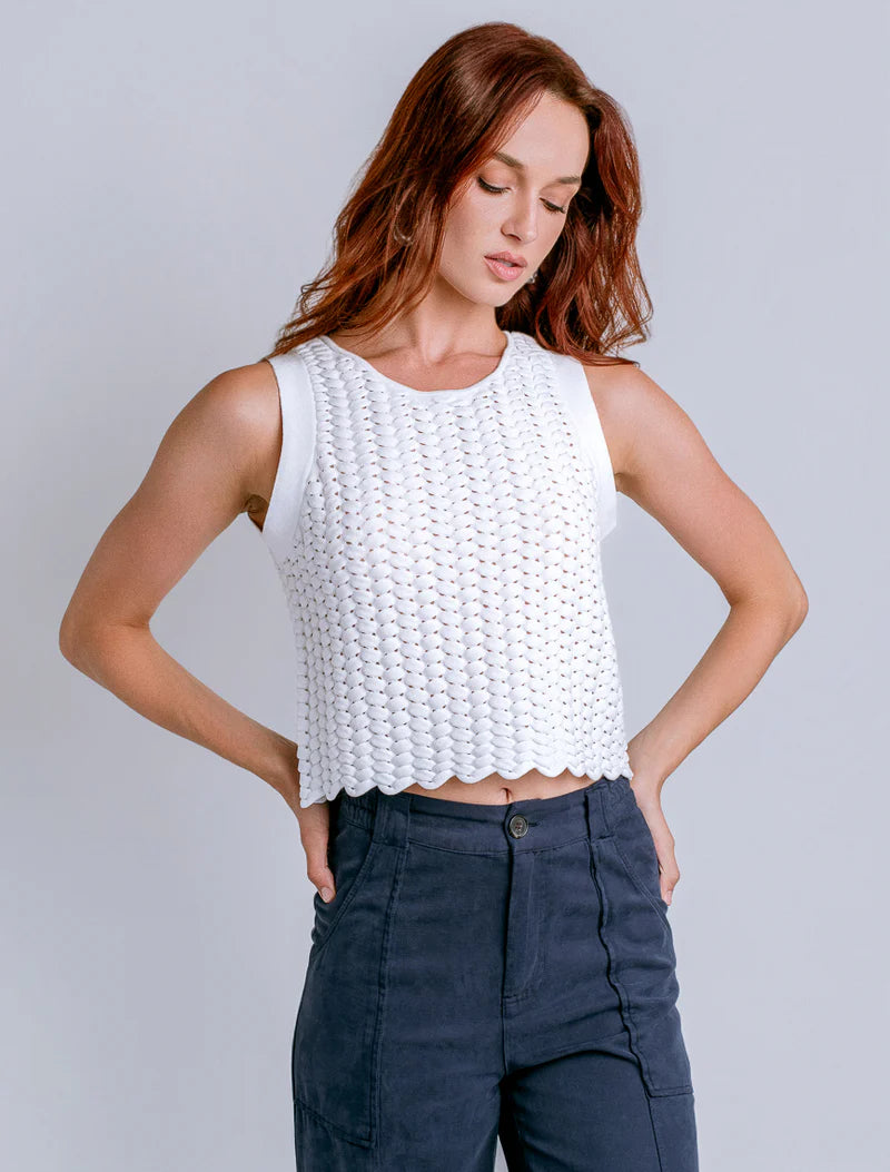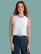 Crew neck sleeveless tank top with scalloped hem 'gemelli' pasta stitch