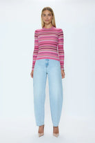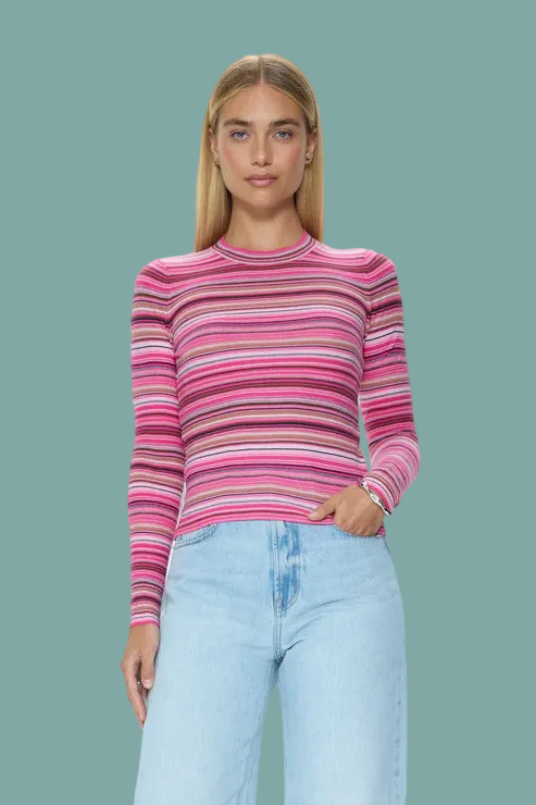 Madison reimagines the classic crewneck with its streamlined silhouette and breathable 100% cotton construction. Balancing softness and structure, the pink and brown multi stripes lend a playful touch, creating a versatile piece that transitions easily from weekday to weekend.