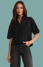 Experience effortless style with the Midnight Embroidered Top, featuring delicate embroidery on breathable 100% cotton crepe. Its collared, short-sleeve design and button-front closure offer a polished look that's perfect for transitioning from day to night. With a regular fit and soft, heavy wash fabric, this top feels as comfortable as it looks. Easy to care for, simply hand wash cold and hang to dry or dry clean to keep it fresh and stylish.