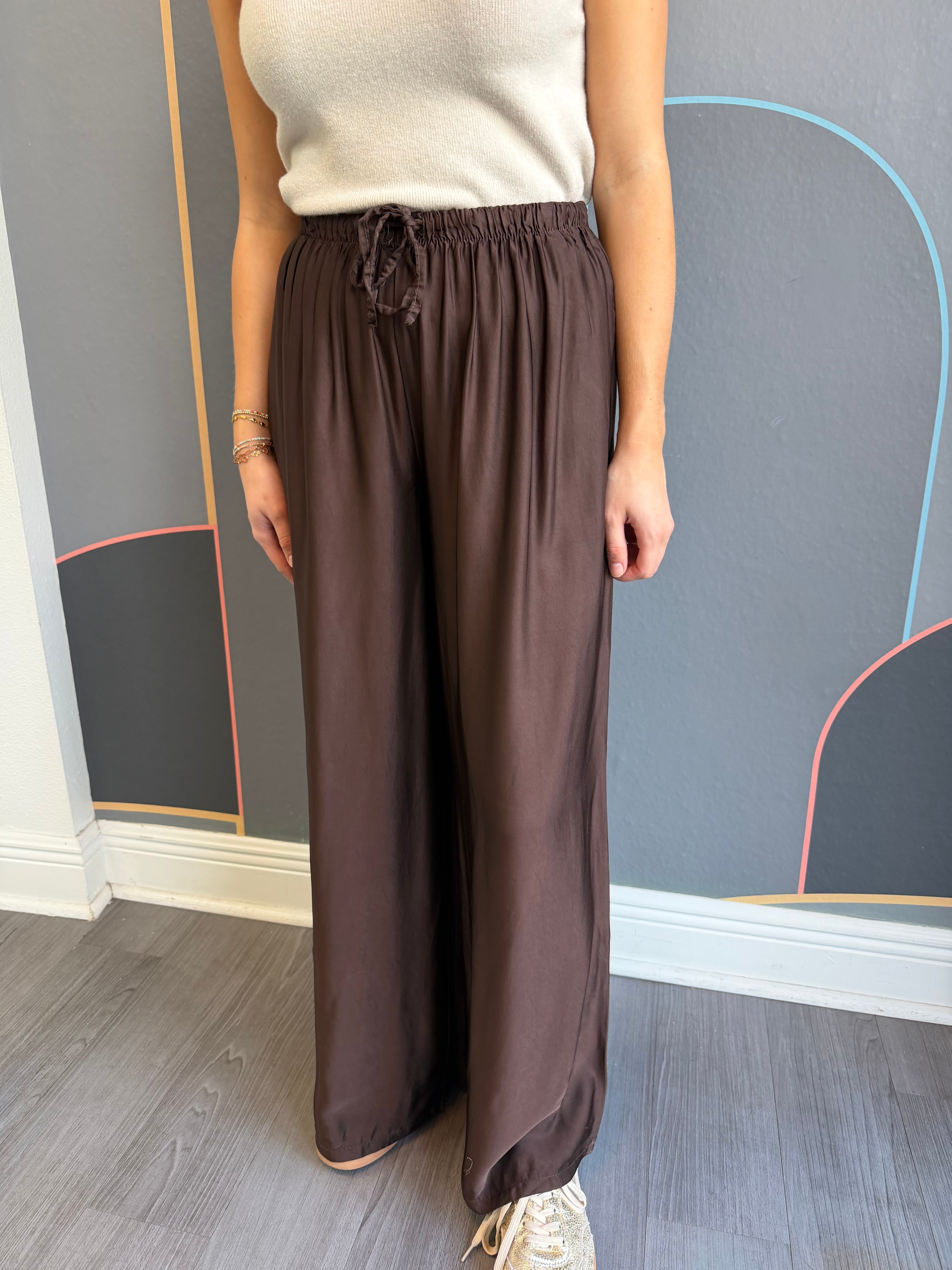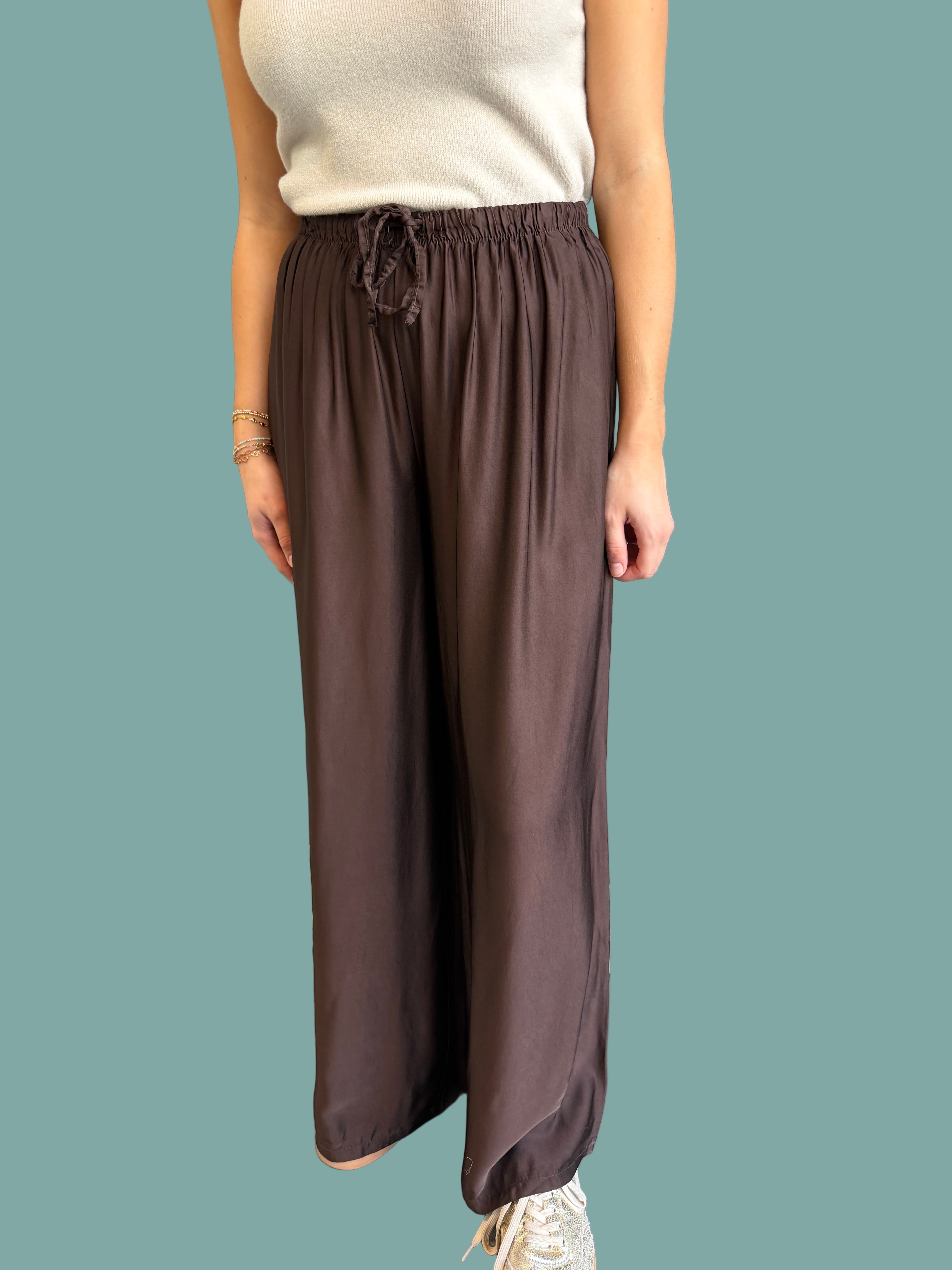 UPGRADE YOUR WARDROBE WITH OUR SILKY WIDE LEG PANTS. MADE FROM HIGH-QUALITY, SILKY MATERIAL, THESE PANTS OFFER A LUXURIOUS FEEL AND A FLATTERING WIDE LEG DESIGN. ENHANCE YOUR STYLE WITH COMFORT AND SOPHISTICATION. PERFECT FOR ANY OCCASION.