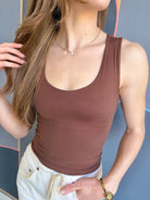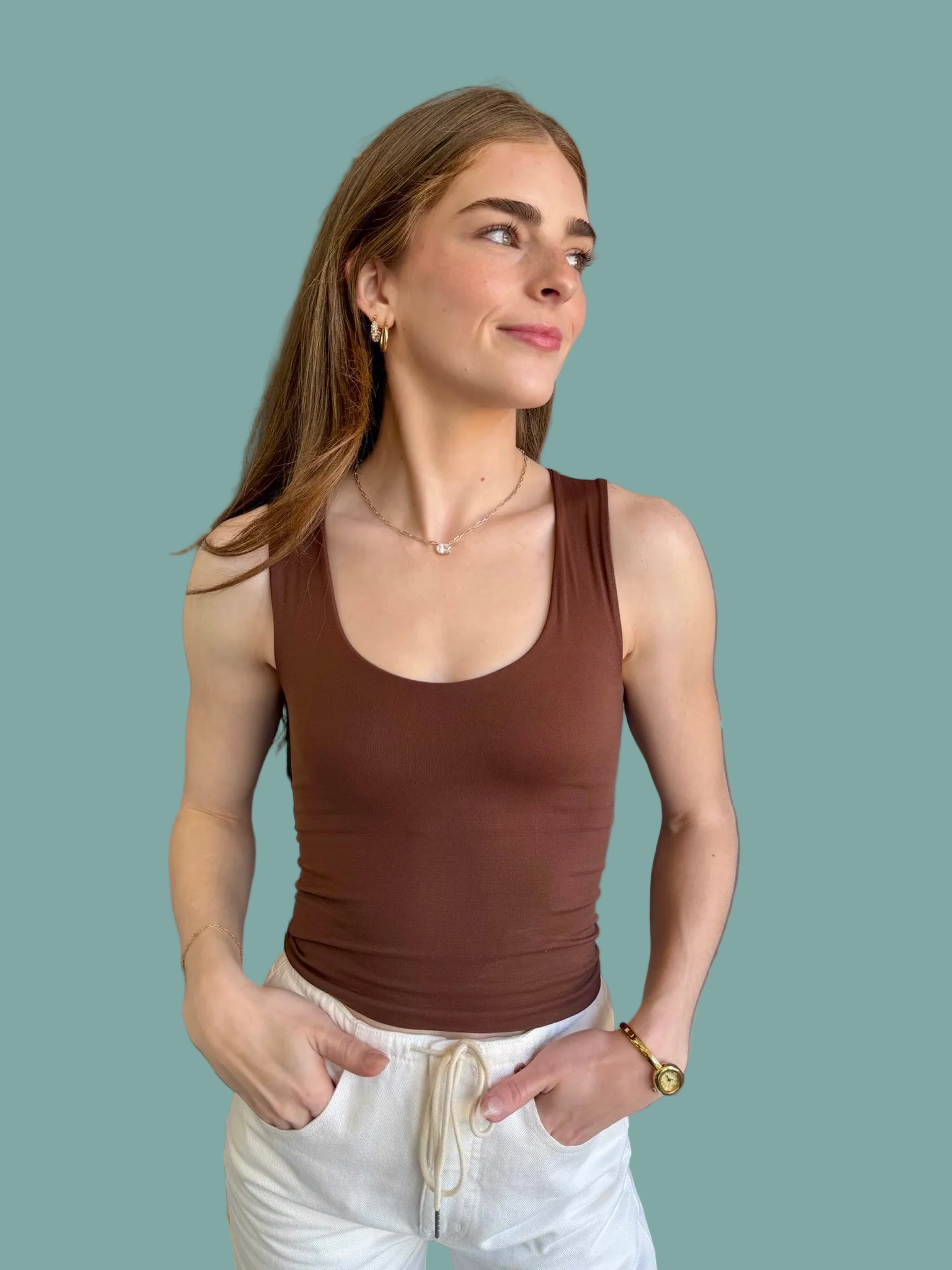 A new addition to your favorite seamless collection. This sleek tank is featured in a buttery soft fabrication with a scoop-neckline and sleeveless silhouette.