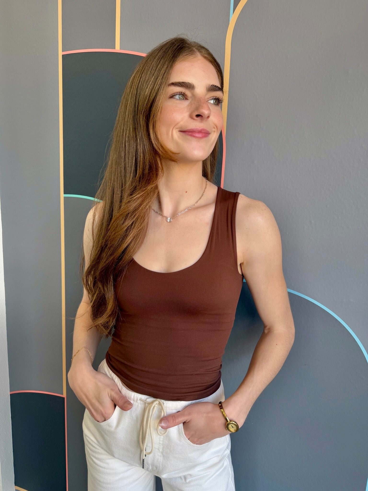 Features: Buttery soft fabrication with a stretchy feel, scoop-neckline, seamless design, wide shoulder straps