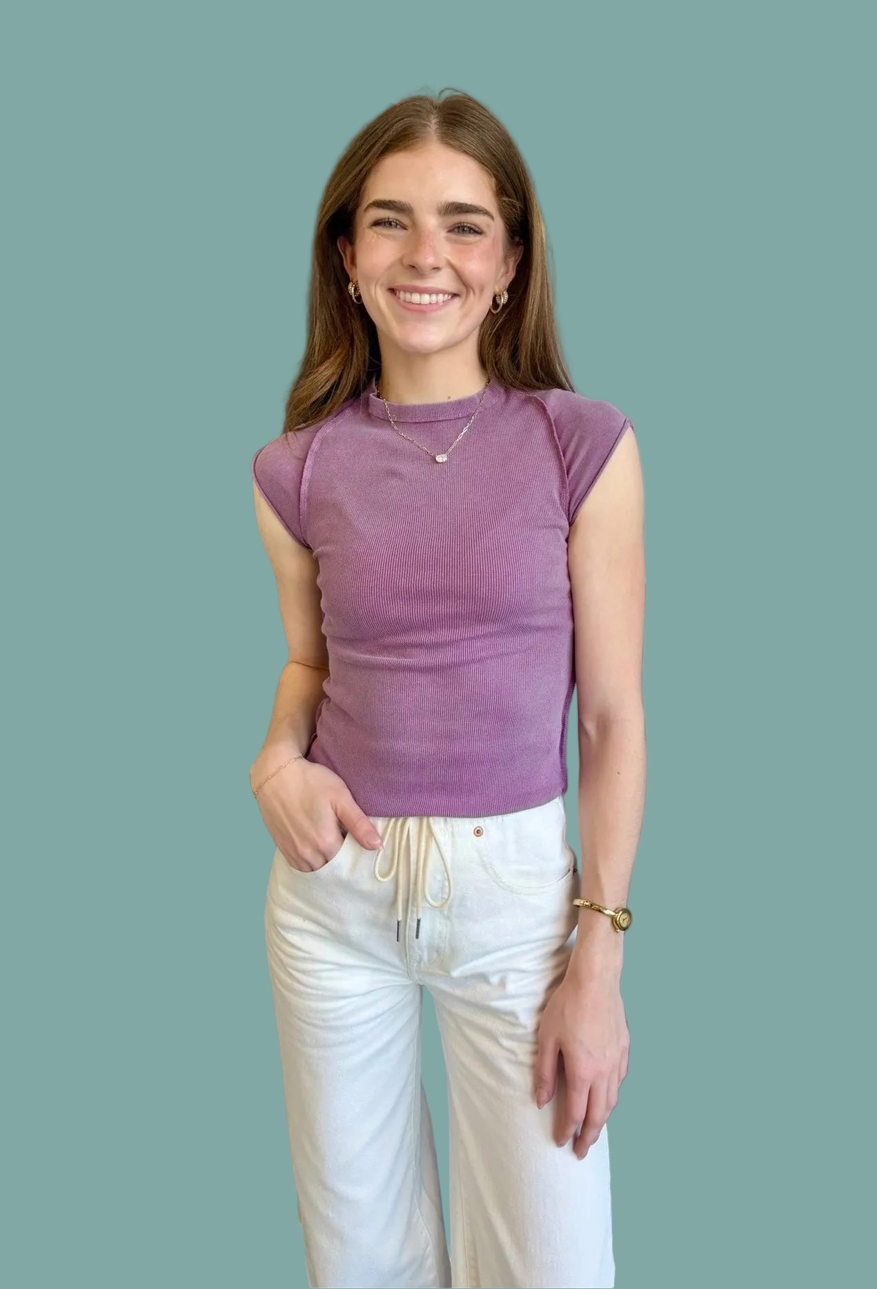 Your new favorite timeless tee from our We The Free collection, featured in a soft, ribbed knit fabrication and slim-fitting silhouette with raised seam detailing and cap-inspired sleeves.