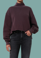 The Isra Sweatshirt delivers effortless style with its relaxed, cropped cut and structured mock neck. Voluminous sleeves create a sculptural silhouette that pairs beautifully with denim or tonal sweats for an understated, off-duty vibe. Crafted from heavyweight brushed fleece in a saturated dark brown, this sweatshirt feels as good as it looks—soft, warm, and incredibly plush. Made from 100% Supima Cotton for lasting comfort. True to size. Machine wash cold.