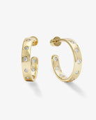 Elevate your daily style with the Ashley Rodeo Hoops 1" in radiant 18k gold. Designed for the perfect balance of polish and ease, these classic earrings feature smooth curves and brilliant bezel-set round simulated diamonds. The simple yet elegant 1-inch silhouette makes them the ideal choice for any occasion, seamlessly transitioning from a casual daytime look to a modern formal aesthetic. Wear them as a dainty standalone piece or stack them effortlessly with your other favorite trendy everyday hoops. If you are looking to refine your jewelry collection with high-quality, elegant handcrafted earrings, this delicate luxury design offers unparalleled versatility. Experience the ultimate fusion of contemporary charm and timeless beauty, crafted specifically to elevate your everyday rotation.