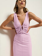 An ode to femininity -- the Gracie Dress has a is relaxed, yet polished look. Made in easy luxe jersey fabric, this form-fitting tank midi features a v-neckline with adjustable tie closure, front keyhole detailing, and lining for utmost comfort and coverage. This one comes in Lavender.