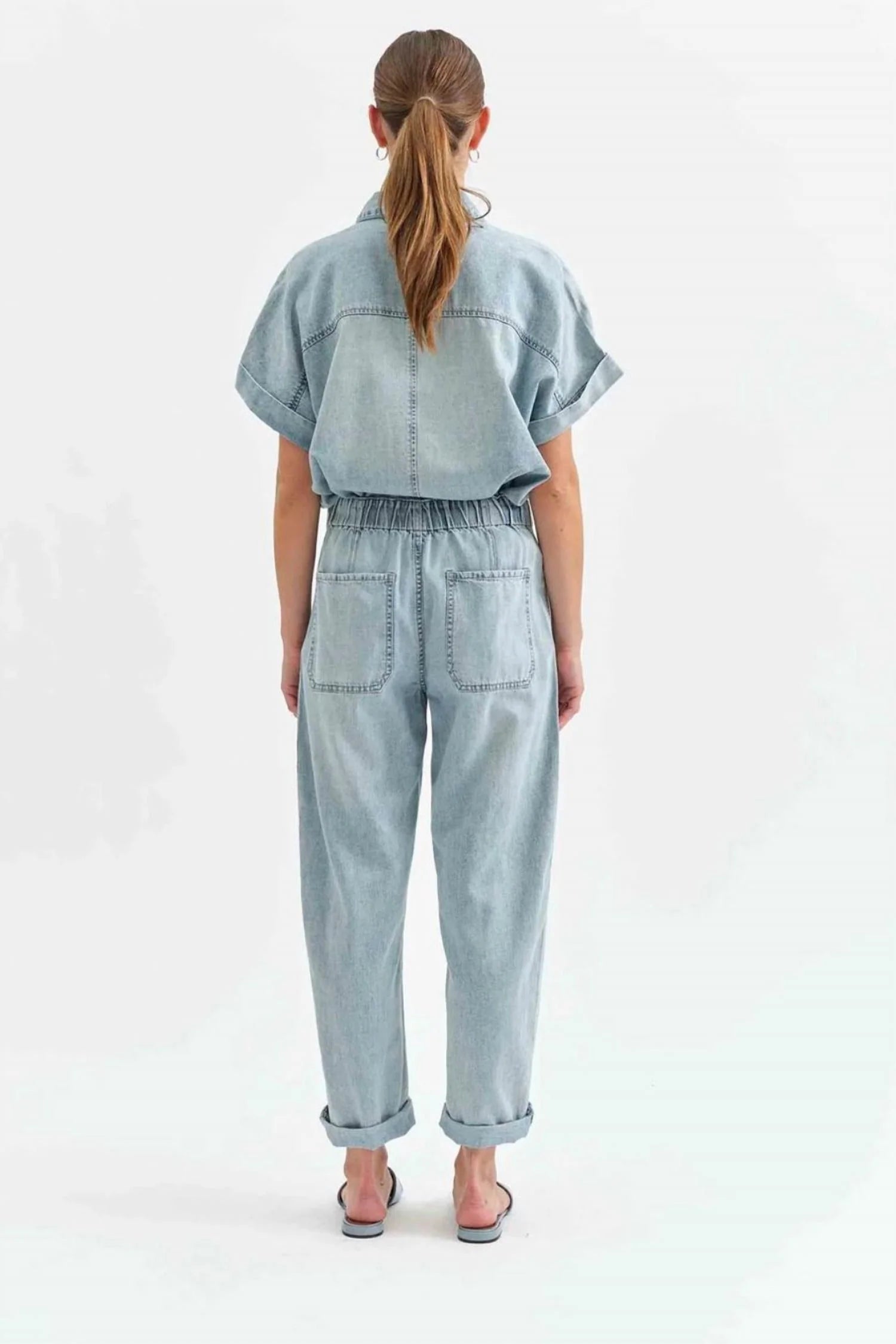 Embrace a relaxed yet stylish silhouette with the Villa Drawstring Barrel Leg Jeans by DAZE. These high-rise jeans feature a comfortable pull-on closure and a wide-leg design with an 11.75-inch rise and a 26.5-inch inseam. Crafted from a cotton blend comprising 77% Cotton, 13% Linen, and 10% Lyocell, they offer a medium denim wash perfect for spring vacation outings. With convenient pockets and a solid pattern, care for these jeans is a breeze with machine wash and tumble dry instructions.