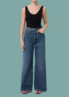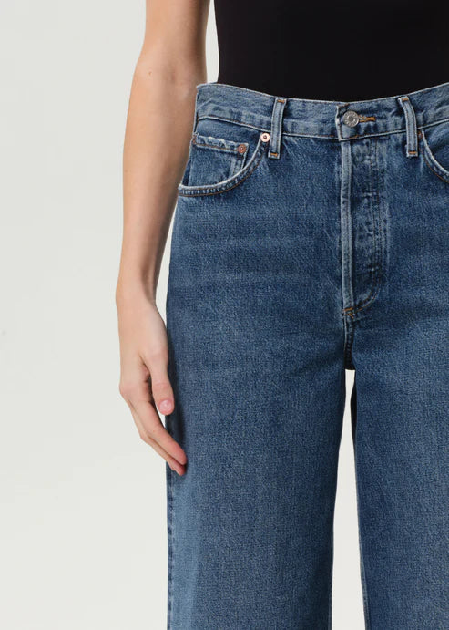 The Dame Jean is designed to flatter, featuring a waist-accentuating high rise, a relaxed fit through the hips, and a statement wide leg. Crafted from 100% regenerative cotton in a medium indigo wash with fading and whiskering, it offers a perfectly broken-in feel. Style it with a sleek tee or ribbed knit for an effortless, everyday look.