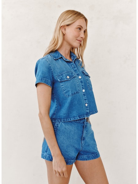 The Short Sleeve Flap Pocket Shirt brings understated style to your everyday rotation. Crafted with a classic collar and button front closure, it features practical flap pockets that add utilitarian charm. The rich indigo Spring Horizon Wash delivers a deep, sun-warmed tone that pairs effortlessly with your existing wardrobe. Short sleeves make it perfect for warm weather layering or wearing solo. A considered essential for those who value both form and function.