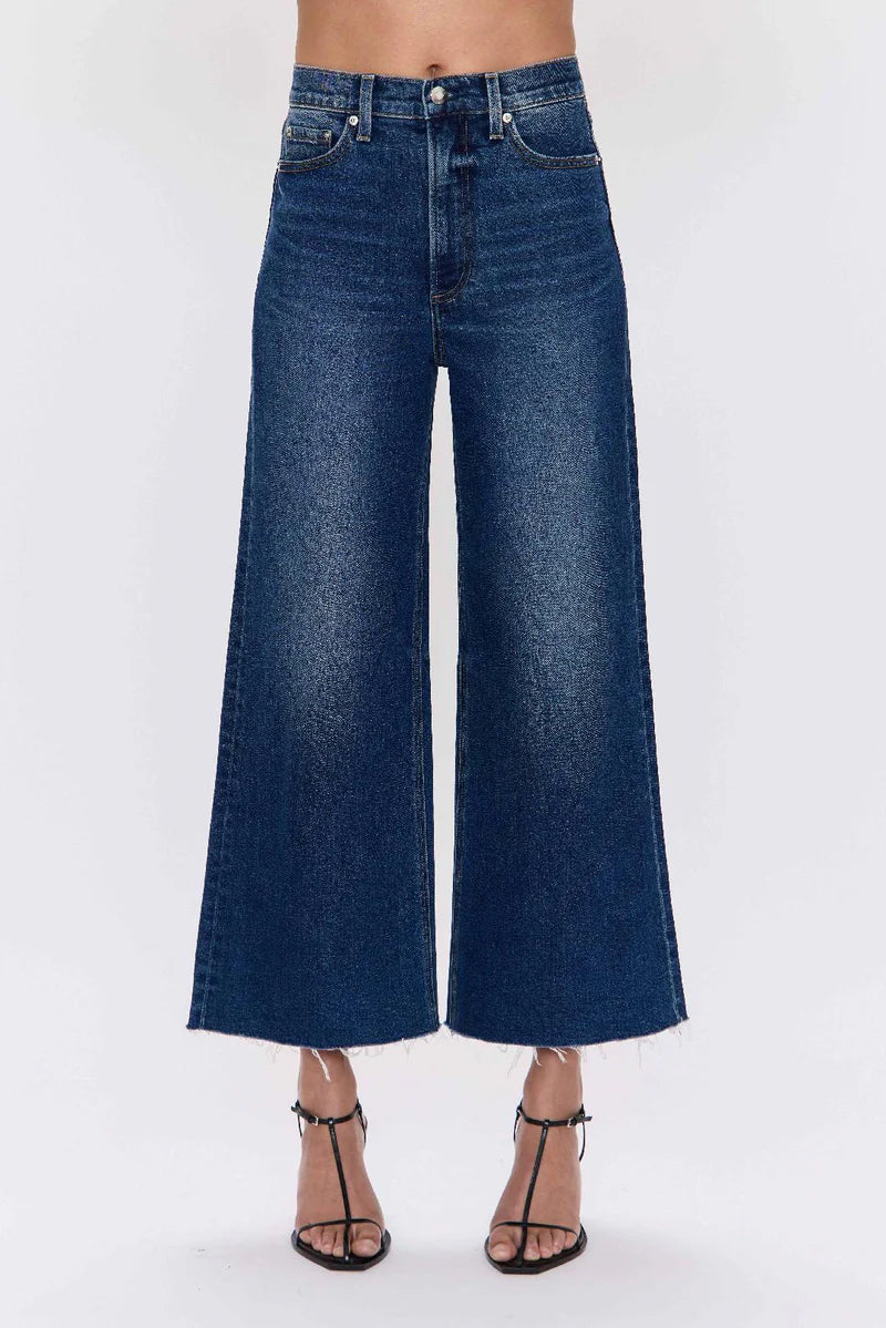 A relaxed, ultra wide leg silhouette featuring a raw finished hem and wide, stitched cuffs. Crafted from our signature comfort stretch denim to provide a structured shape with just the right give.