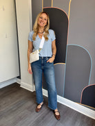 The ‘Palma’ is a modern straight leg with a streamlined, ankle-skimming cut. Crafted from soft stretch denim with a lightweight feel, it’s designed for everyday comfort and ease. Cooper is a classic indigo wash with soft whiskering—style it with anything from a tucked knit to a relaxed blazer.