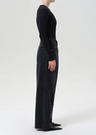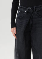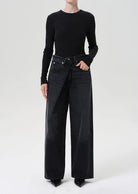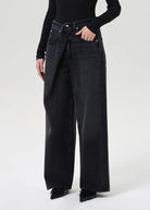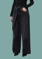 The Vana Fold Jean - Arcane stands out with its signature fold-over waistband and mid-rise, oversized fit. Made from rigid regenerative cotton, these jeans feel soft yet maintain structure. The dark washed black denim offers a worn-in look, while the weightless fabric ensures comfort without stretch. Perfect for pairing with a sleek tank or relaxed button-down, these jeans bring effortless style to your wardrobe. True to size, they also come in a petite 28" inseam for those who prefer a shorter fit.