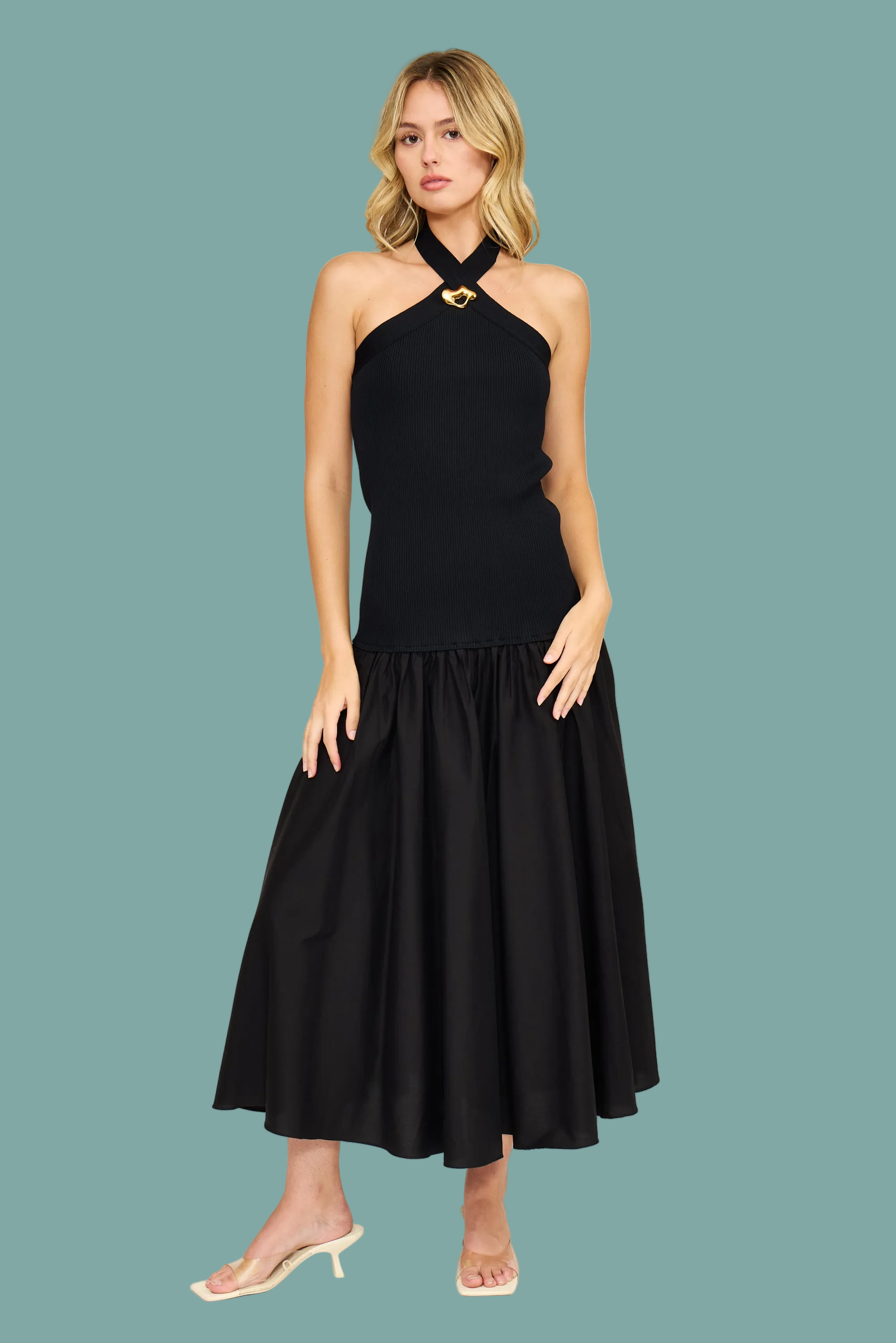 Arella Mixed Media Halter Dress