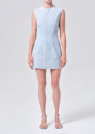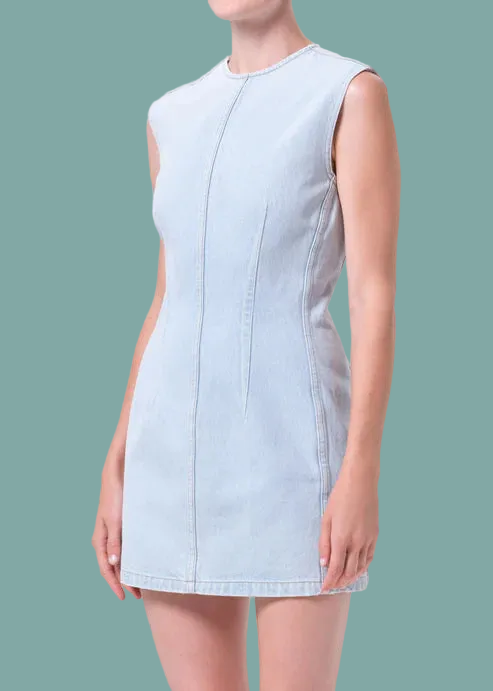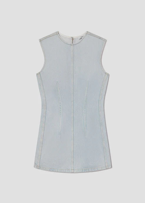 The Barton Dress is a refined take on denim with a sleek, sculpted silhouette. Designed in a light faded indigo wash, it features a tank-style neckline, mini length, and structured seaming that flatters and elongates the body. Crafted from non-stretch regenerative cotton denim with a soft hand feel, it offers everyday comfort while maintaining its clean, tailored shape.