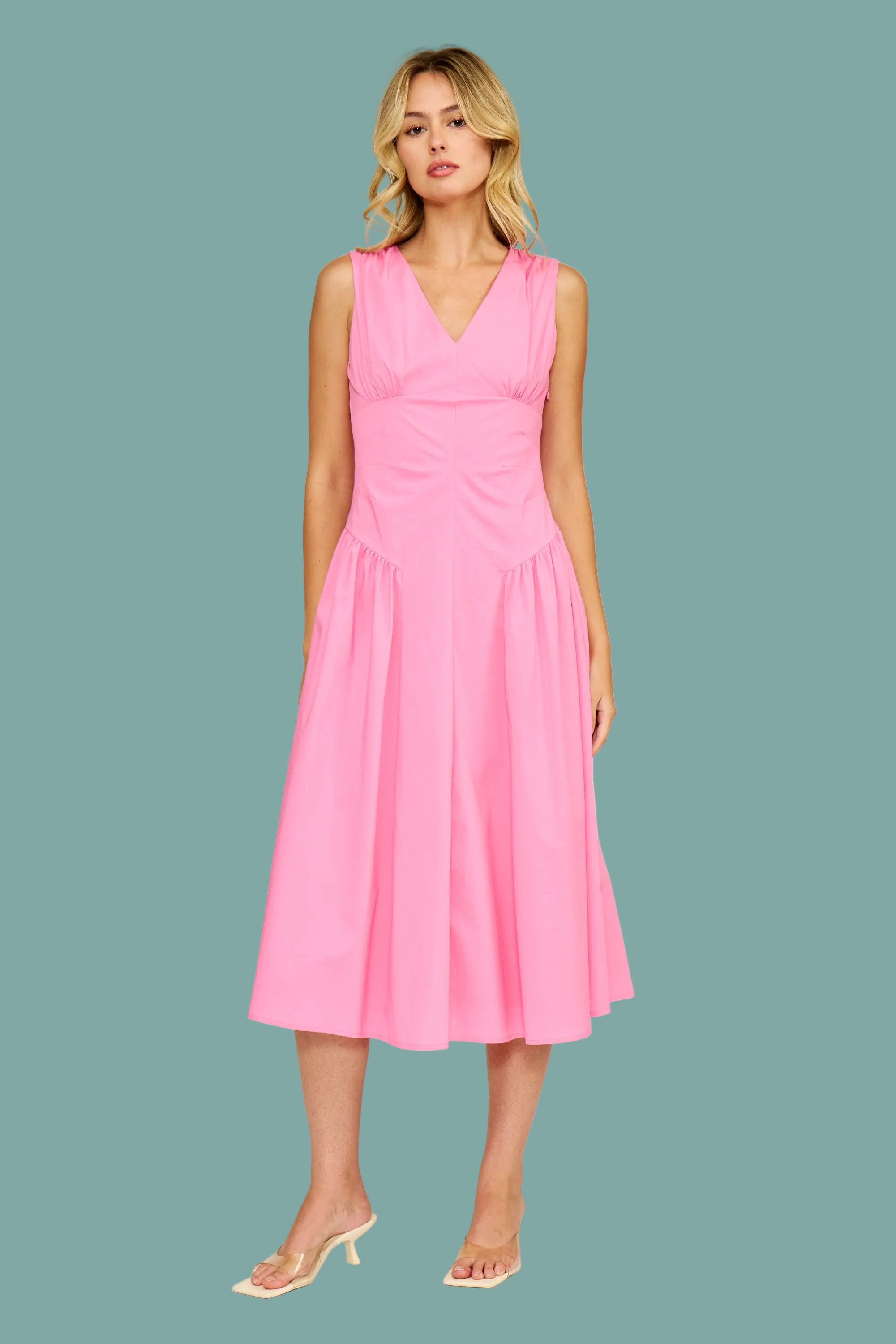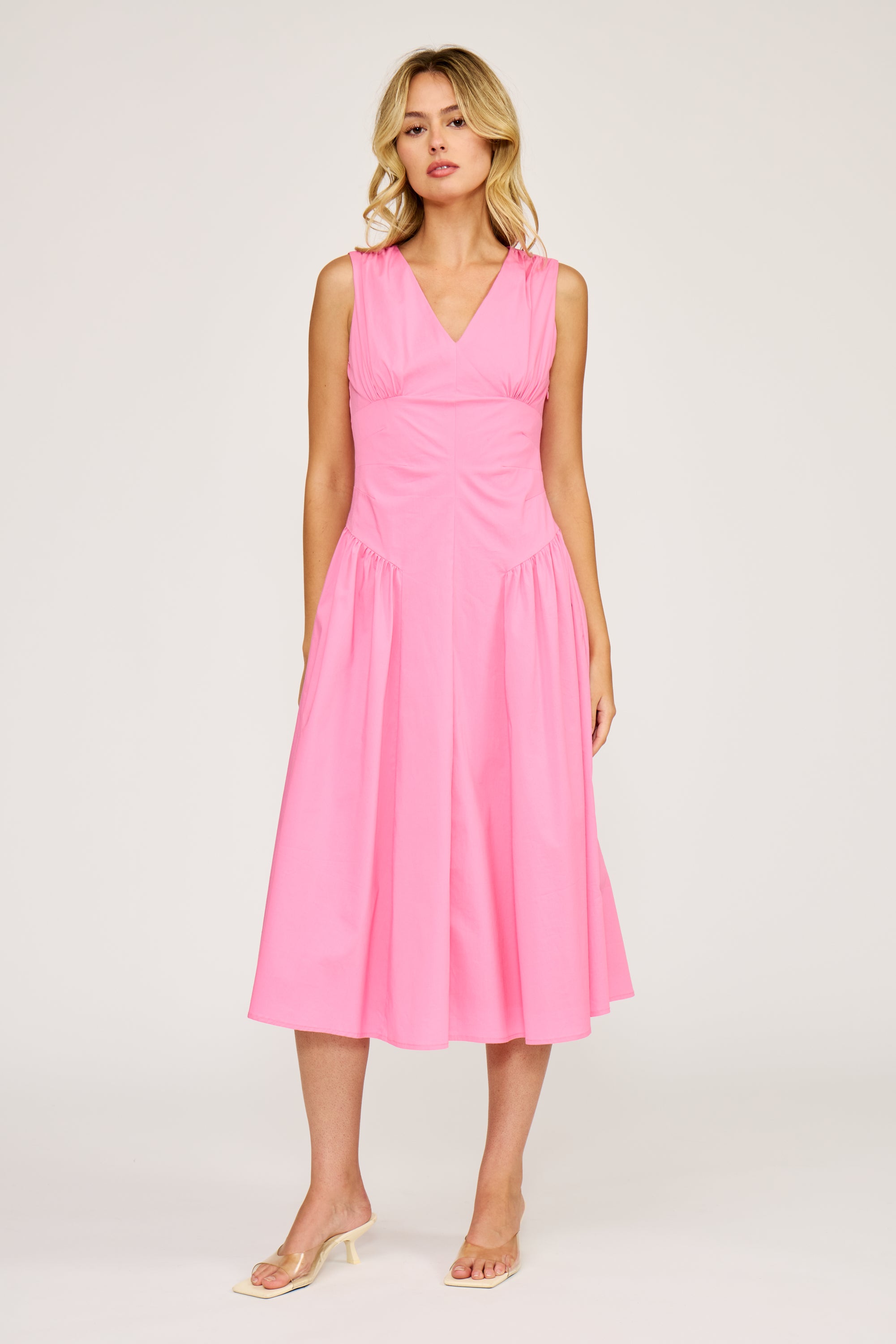 Effortless elegance meets timeless style with the Briony Drop Waist Dress. This midi silhouette features a gracefully lowered waistline that creates a flattering, elongated line while offering comfortable movement throughout your day. The flowing fabric drapes beautifully in a soft pink hue, perfect for everything from casual outings to special occasions. Whether you're dressing up for an event or keeping it relaxed, this versatile piece transitions seamlessly from season to season. A wardrobe essential that combines sophistication with everyday wearability.