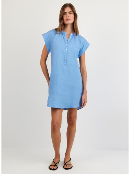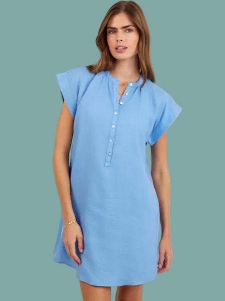 The Cap Sleeve Henley Dress is an easy, everyday style designed for breathable comfort with a refined finish. Rolled cap sleeves offer soft coverage with a casual, effortless feel that works for any season. The Henley placket neckline adds subtle structure and a touch of polish, elevating your everyday look. A rounded hemline creates movement and an easy, flattering drape that moves with you throughout the day. Perfect for layering or wearing solo, this dress transitions seamlessly from casual outings to relaxed work settings.