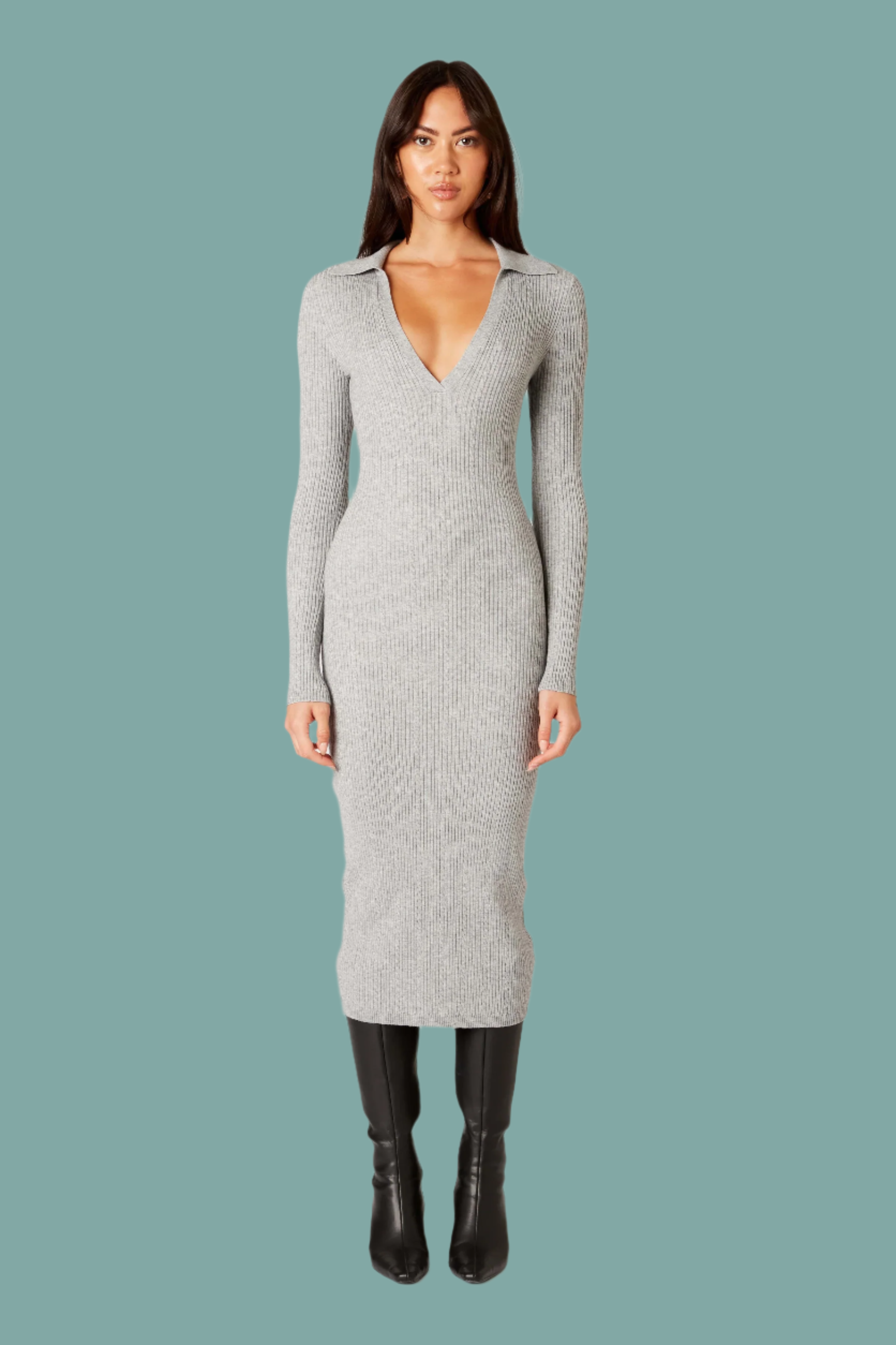 Unleash your inner fashionista with the Catherine Sweater Dress. This body-con dress features a stylish collar and a micro cable knit design, perfect for showcasing your curves in a chic and cozy way.