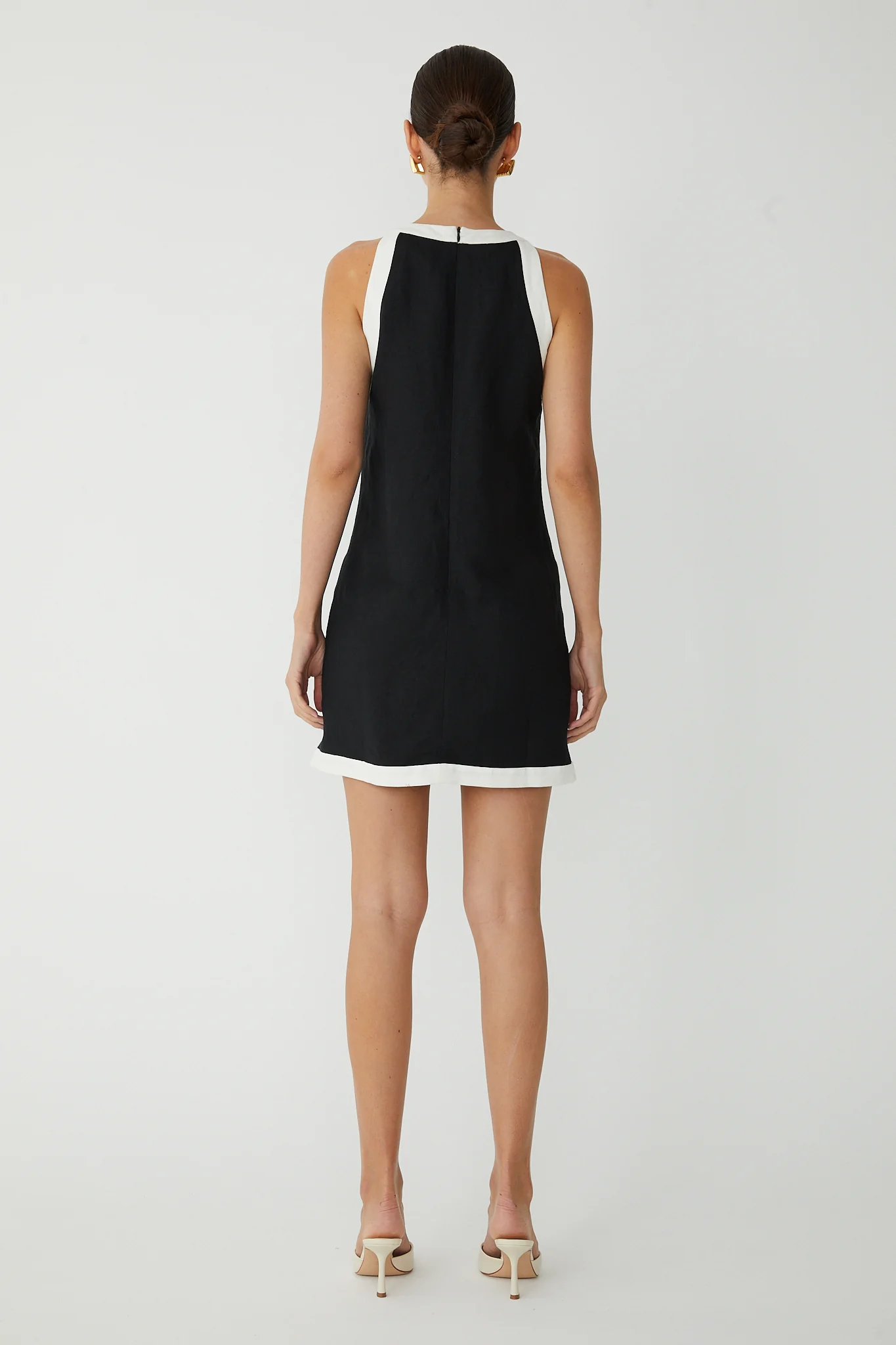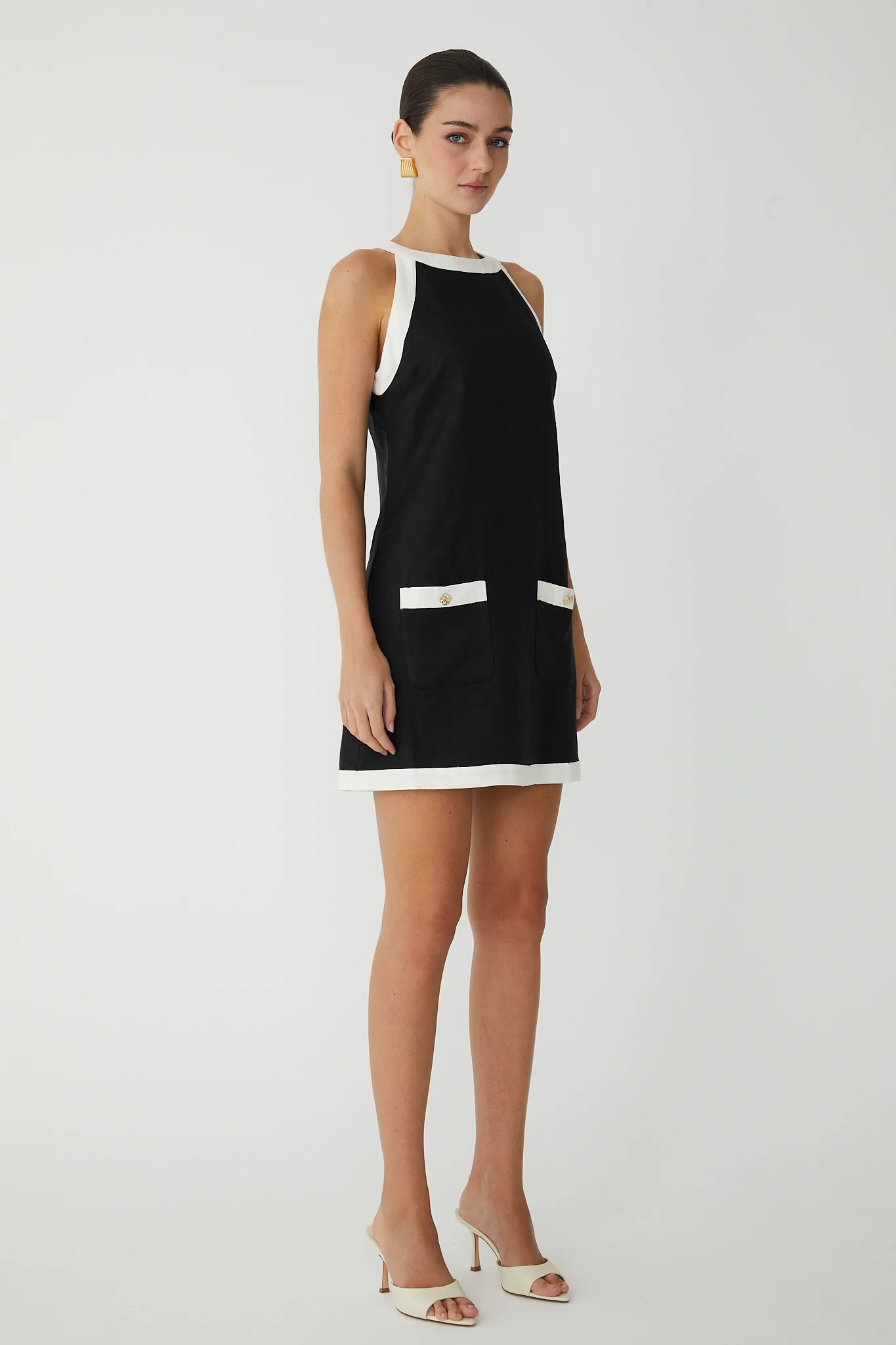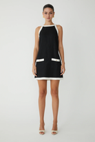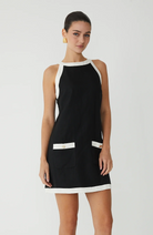 Crafted from breathable linen, the Tenney dress combines timeless elegance with practical style. Its classic black and white palette is elevated by gleaming gold button accents, creating a sophisticated look that transitions effortlessly from casual outings to spring gatherings.