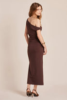 Effortless glamour with a modern edge. Crafted from our luxuriously soft draped modal jersey, this dress features a twisted neckline that sits elegantly off the shoulder for a touch of drama.