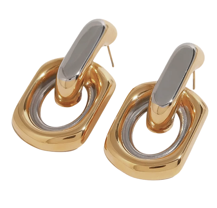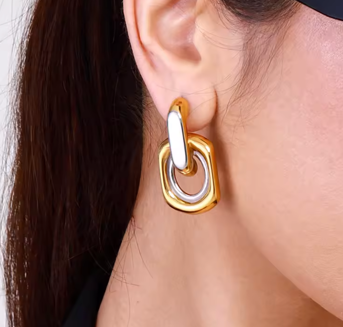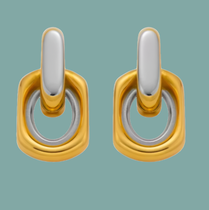 Introducing the Duo Link Hoop Two Tone Earring, a Paperclip U shape design with a chic retro and modern vibe. Perfect for day to night wear, this timeless staple is double plated gold and silver, hypoallergenic, surgical steel post, and waterproof. Say hello to your new go-to earring!