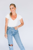 The Midland V-Neck Bodysuit is your new wardrobe essential. Crafted from luxuriously soft 100% Pima cotton, this versatile piece layers seamlessly under everything from blazers to sweaters or stands alone as a chic basic. The flattering V-neckline adds subtle sophistication while the premium fabric ensures all-day comfort and durability. A timeless foundation piece that works as hard as you do.
