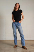 this '90s-inspired tee is going to be your most worn piece in your closet. our fitted baby tee is the perfect length to tuck into denim. your new go to.