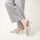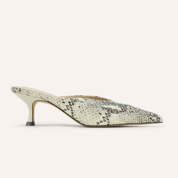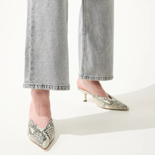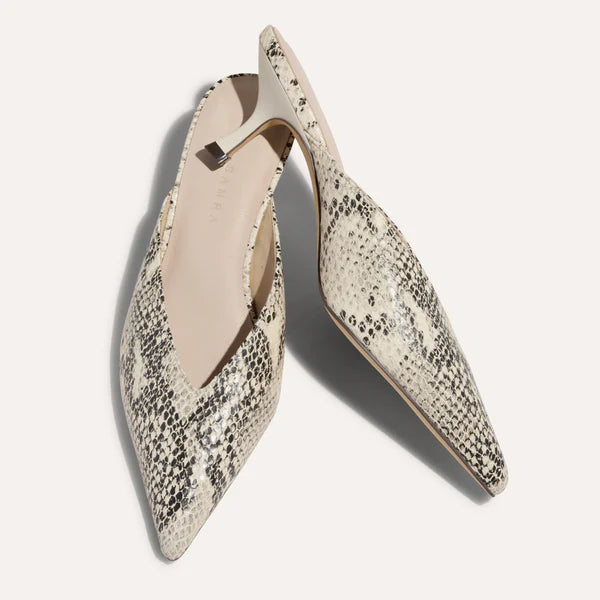Refine your look with this elegant mule heel, designed to bring effortless sophistication to any outfit. Crafted from luxurious leather with a croc-embossed texture, this silhouette offers a sleek, modern edge while maintaining timeless appeal. The pointed toe creates a flattering, elongated profile, while the mid-height heel provides the perfect balance of style and comfort. Finished with a cushioned memory foam footbed, this mule delivers lasting support for confident, all-day wear.