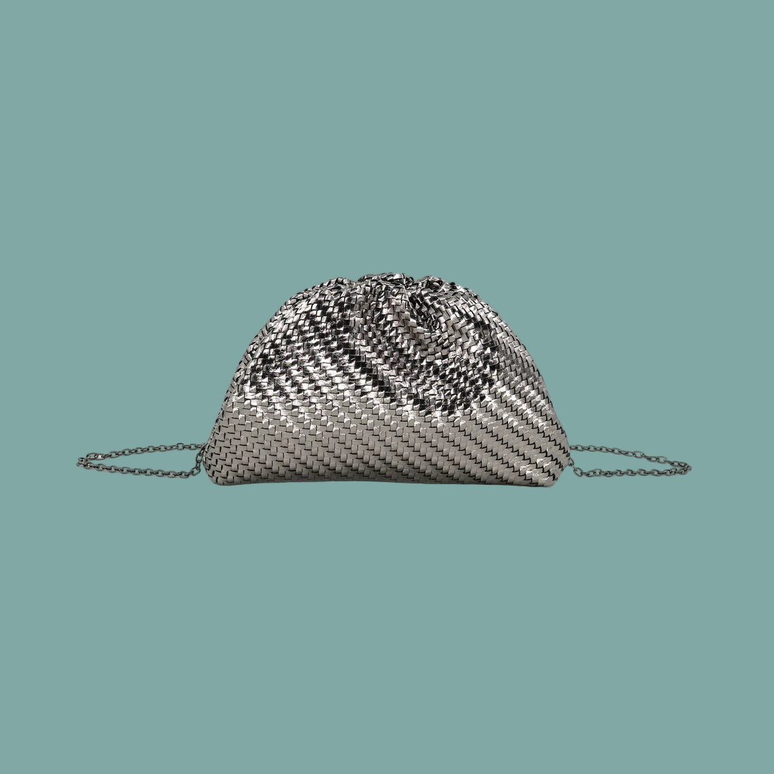 Carry your things in style with this sleek Metallic Dumpling Bag. Measuring 10 x 5.5 x 2 inches. The shimmering metallic finish adds a touch of glamour to your meal prep routine, while the compact design fits easily into bags and backpacks. Whether you're a dumpling enthusiast or just love convenient food storage, this bag keeps your food fresh and your vibe elevated.