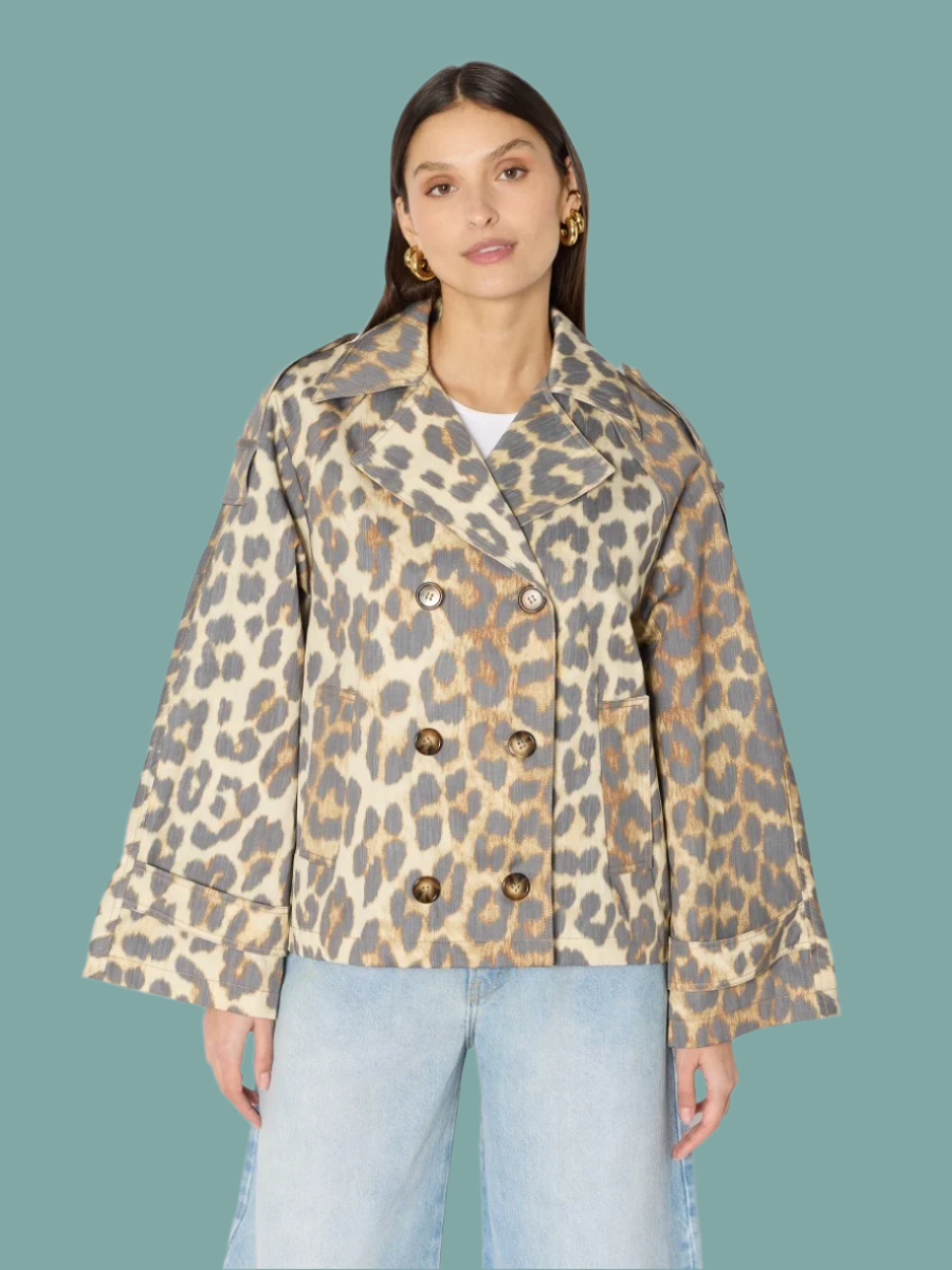 The trench MURIEL is a piece that embodies the timeless elegance of French fashion, while adding a bold touch thanks to its print leopard. This trench revisits a classic with a modern and oversized cut. Made from cotton, it is both light and durable, ideal for mid-season days. Its double breasted and cuff straps add details that enhance the style and ensure an unforgettable look.