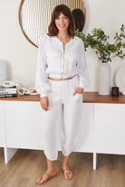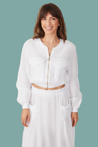 Effortless style meets comfort in this mineral wash linen cropped jacket. Crafted from 100% pure linen, it features a relaxed collarless design, functional front pockets, and a convenient zip-up closure. The soft mineral wash finish adds character and pairs seamlessly with everything from casual basics to elevated pieces. Perfect for layering or wearing solo, this versatile jacket transitions beautifully from season to season.