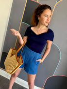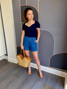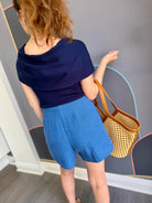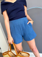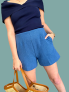 Elevate your wardrobe with the Jovie Short, a sophisticated cerulean tweed piece designed for modern style. The high-waisted silhouette flatters your figure while the rich tweed fabric adds texture and visual interest. Perfect for pairing with tucked-in blouses, oversized sweaters, or fitted tops, this versatile short transitions seamlessly from casual outings to polished occasions. The timeless cerulean hue complements a range of skin tones and pairs effortlessly with neutrals or complementary jewel tones. Crafted for comfort and durability, the Jovie Short is an essential addition to any thoughtfully curated closet.