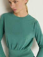 The Brixton Top is a versatile essential featuring a classic crew neckline and a slim, flattering fit. Designed for everyday wear, it pairs effortlessly with any outfit. Button snaps on the shoulder add a subtle, stylish detail. Available in a calming Sagebrush shade, it’s perfect for a laid-back, comfortable look.
