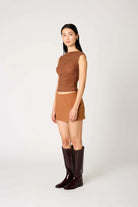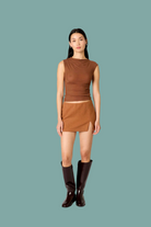 A sculptural take on second-skin softness, the Marge Top is designed with a draped mock neckline and an asymmetrical shoulder that draws attention with understated elegance. Pair it with your favorite bottoms, or the Zella Skort