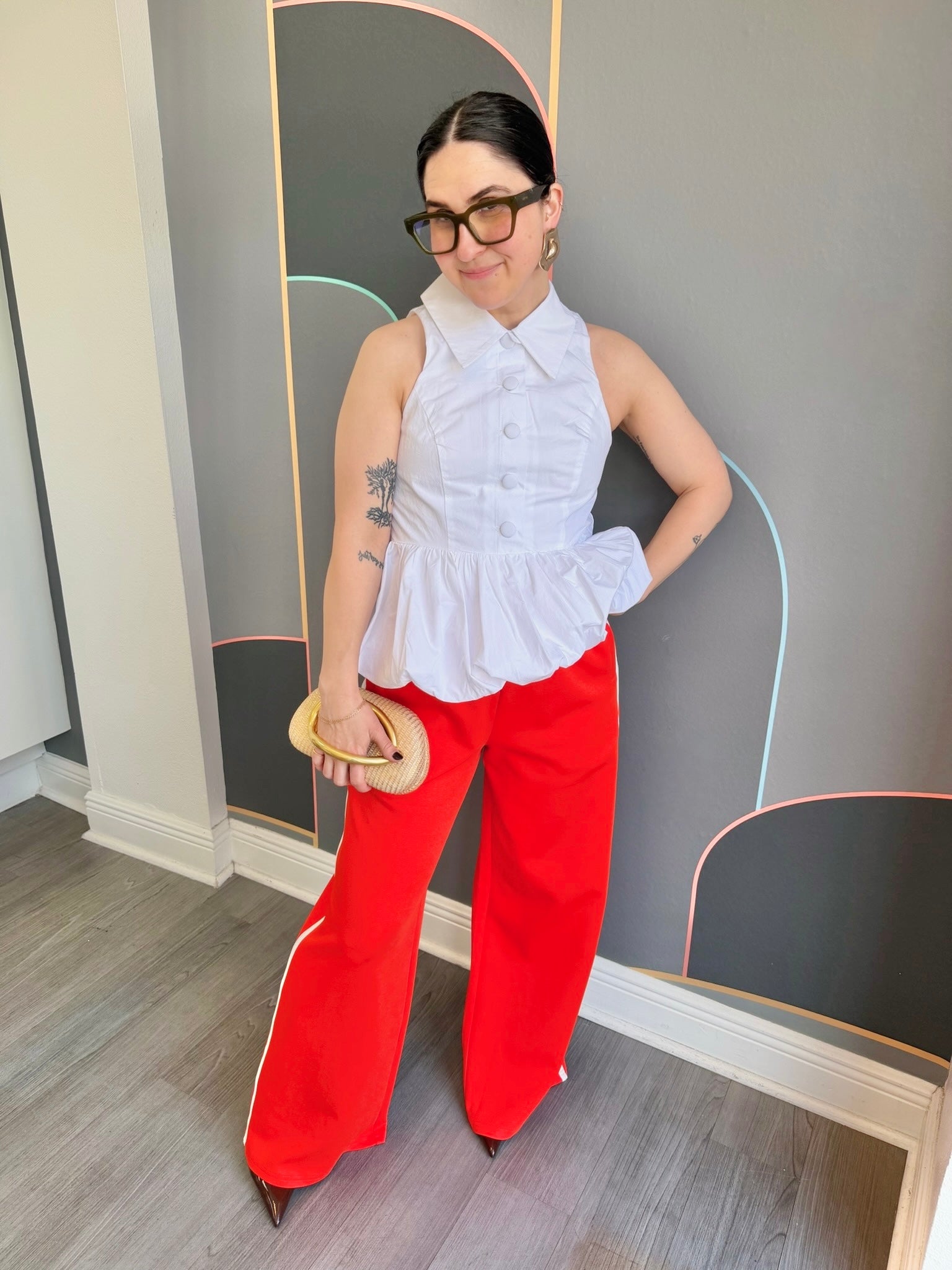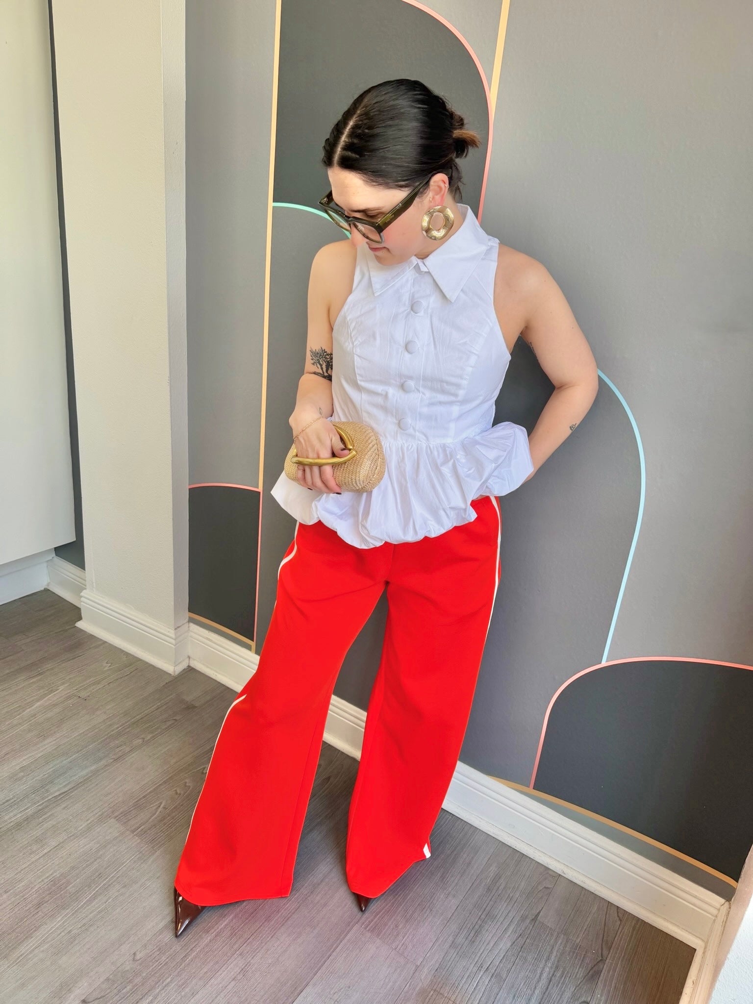 The Mikos Wide Leg Pant delivers effortless style with a clean, modern silhouette and sporty contrast stripe down the side. Made from smooth travel knit that resists wrinkles, these pants move seamlessly from airport to everyday wear without sacrificing comfort or polish. The relaxed fit feels like your favorite lounge set, making them perfect for long days on the go or cozy time at home. Pair with the Nell sweatshirt to create an easy travel outfit that requires zero effort. Once you pack them, you'll wonder how you ever traveled without them.