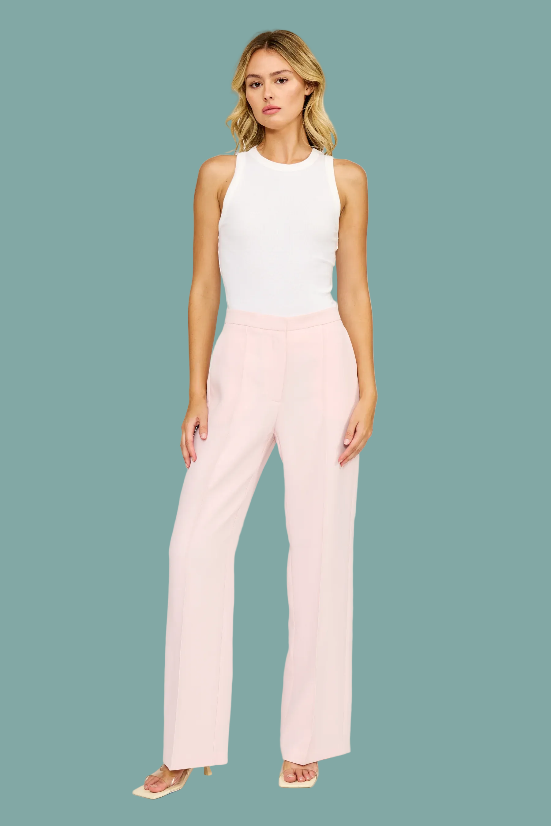 The Tara Pant by Lucy Paris brings effortless elegance to your closet. These light pink wide-leg pants feature a flattering mid-rise silhouette with a subtle flare that's perfect for right now. Crafted from a premium blend of polyester, rayon, and spandex, they offer a comfortable, relaxed fit that moves with you. Style them with a casual tee for everyday wear or dress them up with a button-up blouse for evening plans. Complete with front zipper closure and functional pockets, these true-to-size pants are your go-to for spring events and beyond.