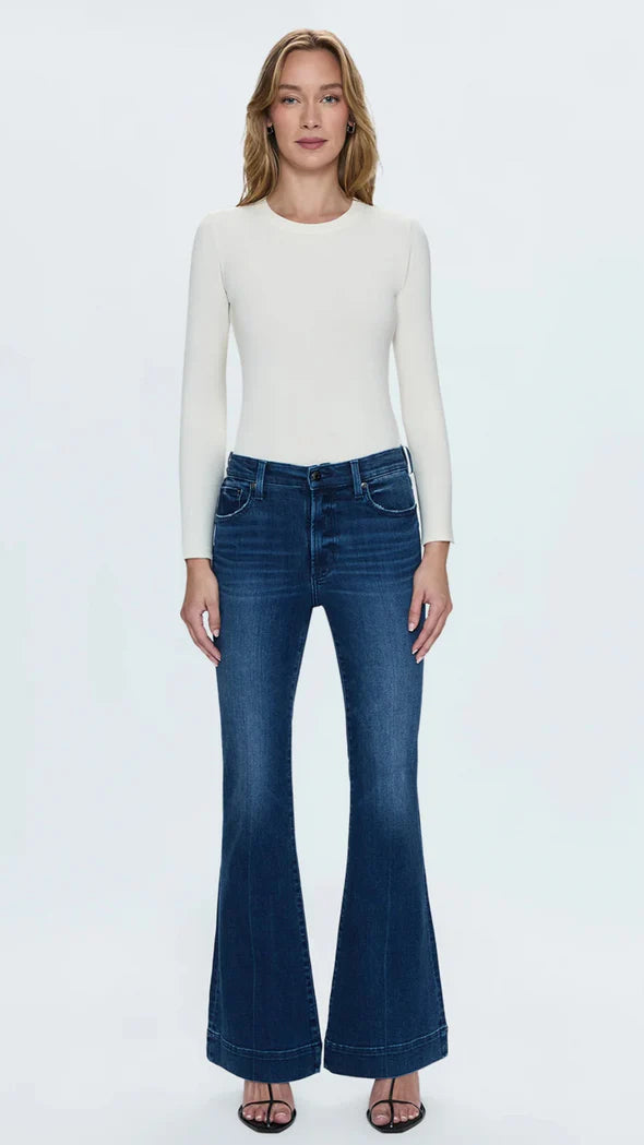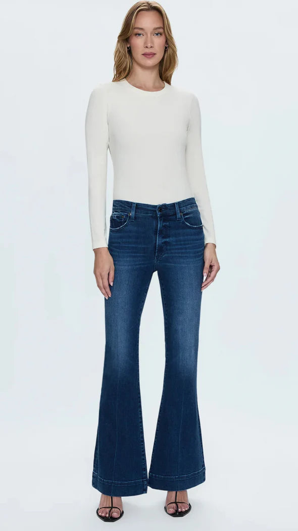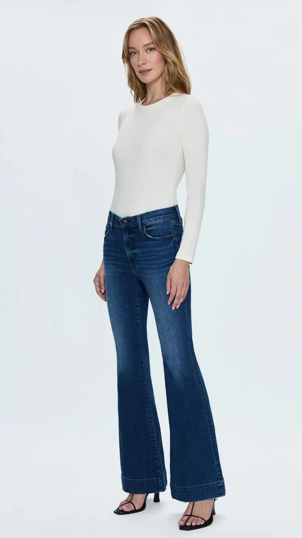 Lexi Mid Rise Bowed Straight Jean - Silver Screen