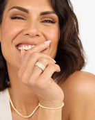 Serious sparkle with a wave of your hand? Yes please! This bold Slick Pavé Ring features a thick cigar-style band adorned with pavé simulated diamonds that catch the light from every angle. The perfect statement piece to elevate your ring stack, it delivers maximum glamour without the fuss. Layer it with delicate bands for contrast, or let it shine solo as your go-to sparkly essential.