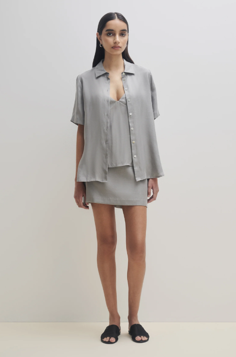 The Rylan Mini Skirt is made from a Tencel blend fabrication with a soft, sueded hand feel. The silhouette is a high rise and mini in length. Features include an invisible zipper at centre back. This skirt is fully lined.