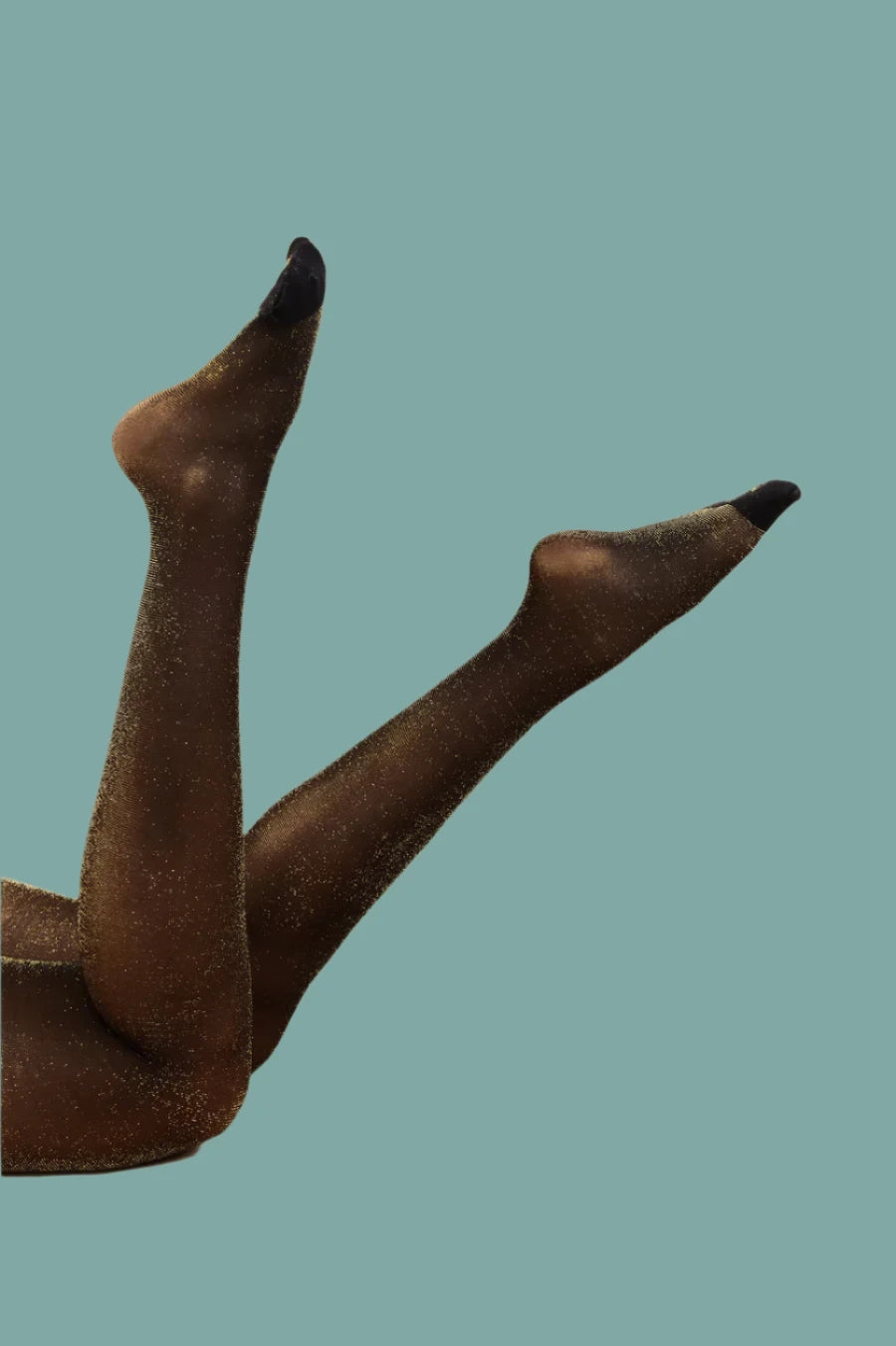 Shimmer is back. The Champagne Shimmer 30 denier tights are made with gold threads embedded throughout, for a sparkly finish that’s worthy of a toast.