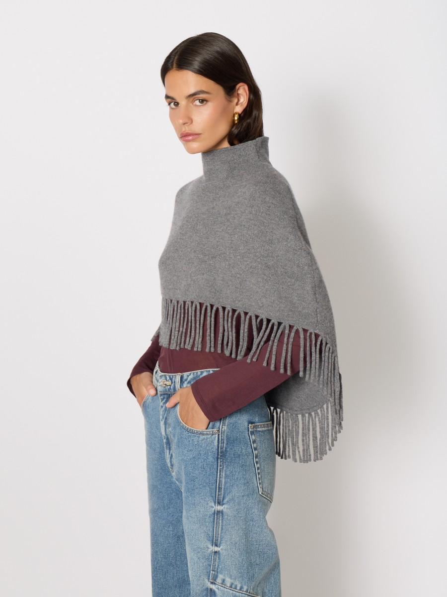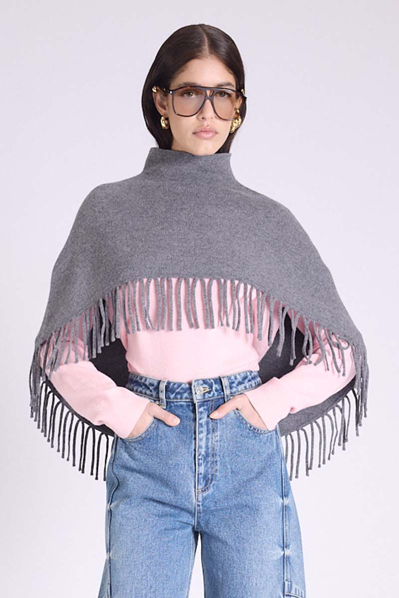 Stay cozy and stylish with the Marmo Wool Poncho. Featuring a high collar for extra warmth and fringe details along the bottom, this poncho adds a relaxed yet chic touch to any outfit. Perfect for layering on cool days, it offers comfort without compromising on casual style.