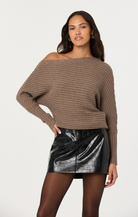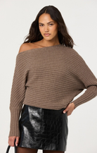 The Samaria Sweater is your go-to piece for effortless style. This off-the-shoulder design features a slouchy fit with horizontal ribbing for added texture and visual interest. Semi-batwing sleeves create a relaxed, flowing silhouette that's perfect for layering or wearing solo. Whether you're dressing it down with jeans or pairing it with tailored pieces, this versatile sweater delivers comfort without sacrificing on-trend appeal.