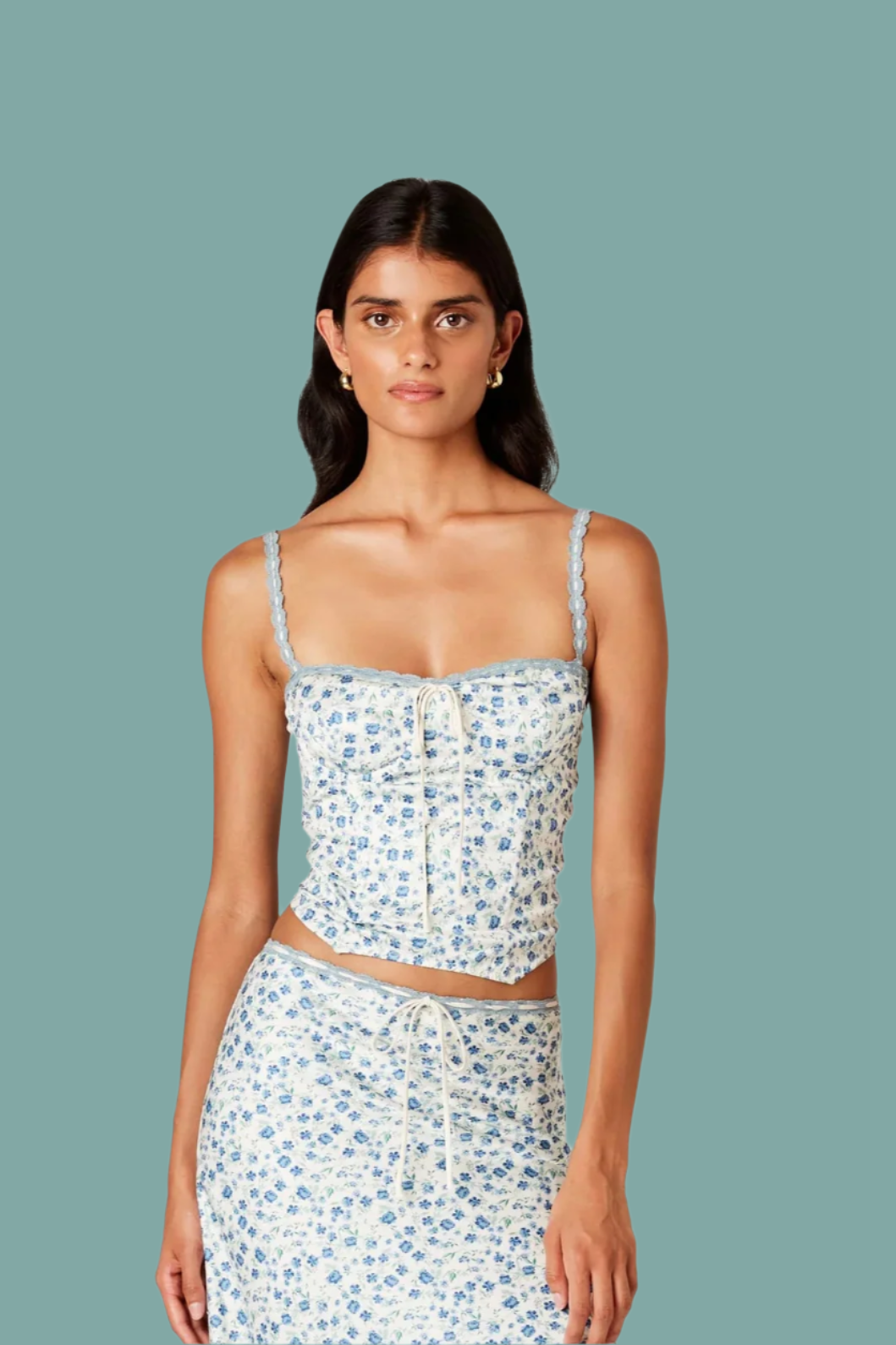 A classic corset with a romantic touch. The Pauline Corset is designed to sculpt and flatter, featuring delicate lace trim, dainty ribbon details, and a structured bodice that hugs in all the right places. The sweetheart neckline and adjustable straps add a feminine finish, making it the perfect piece to dress up or down.