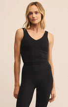 Soft, sculpting, and ultra-breathable, this ribbed v-neck tank brings sporty ease with wide straps and a built-in bra. Perfect for workouts or layering under your weekend look.