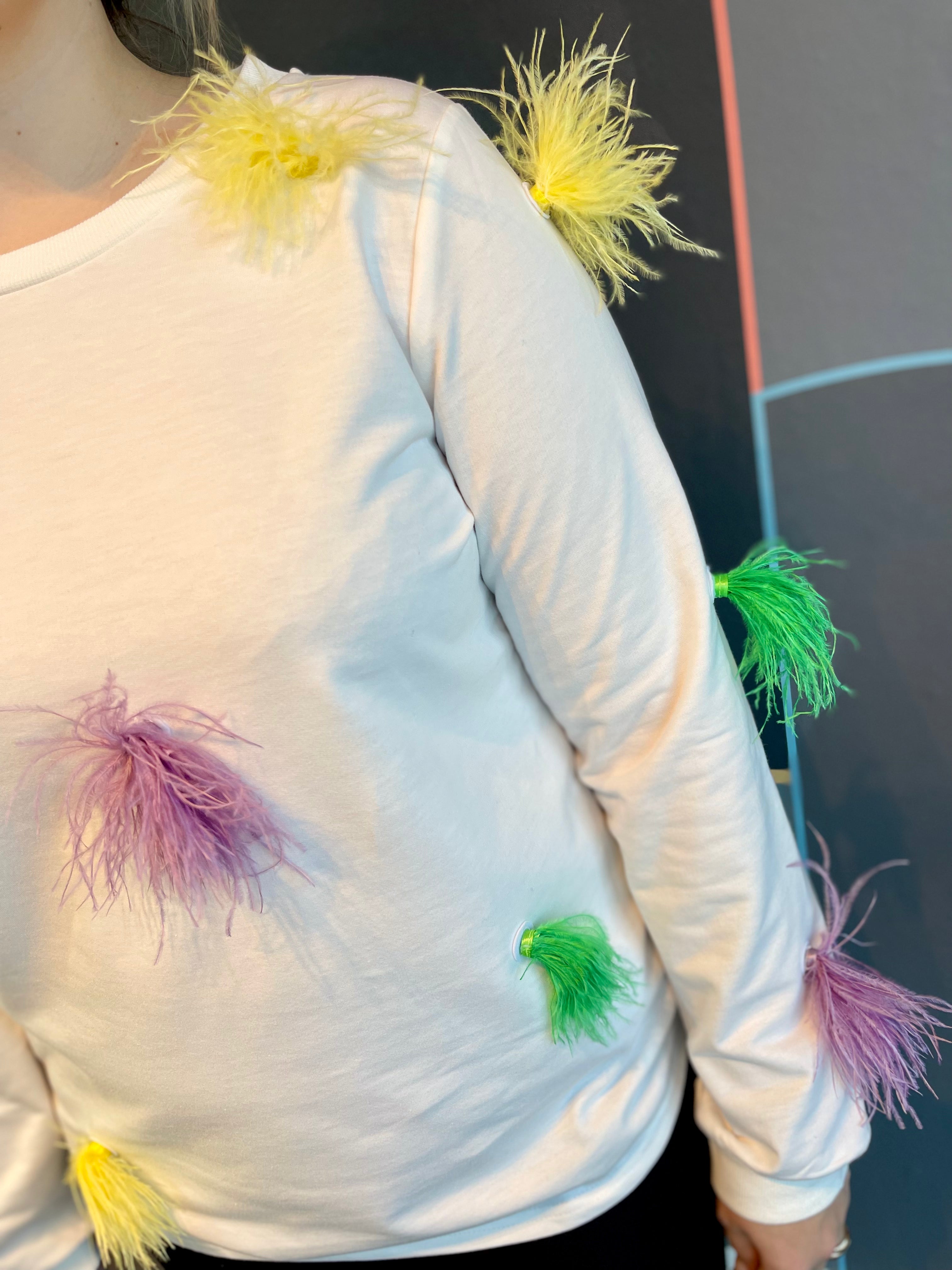 Mardi Gras white faux feather pom pom long sleeve pullover top