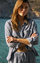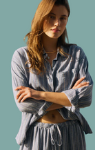 A fresh take on a classic, this linen button up shirt features a relaxed drape and subtle texture. Vertical stripes have a flattering effect, while a relaxed collar, chest pocket, long sleeves, and curved hem make it easy to wear layered or half-tucked.