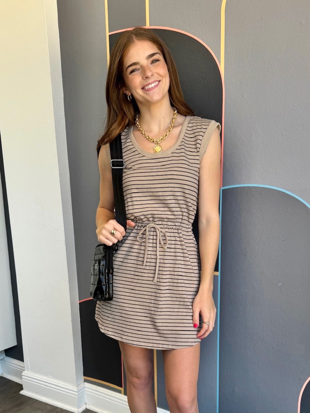 This is the dress that makes everyday feel a little more fun. Crafted from soft cotton jersey with a laid-back striped pattern, it features a scoop neckline, side pockets, and a drawcord waist that lets you shape it to your liking.
